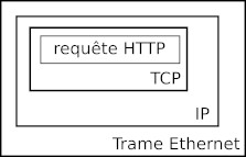 Par exemple, si une personne consulte une page web depuis un ordinateur relié au réseau par l’intermédiaire d’un câble Ethernet, on aura :