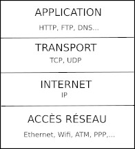Dans ce modèle un protocole de la couche application est encapsulé par un des protocoles de la couche transport qui est lui-même encapsulé par le protocole de la couche internet qui est lui-même encapsulé par un des protocoles de la couche accès réseau.