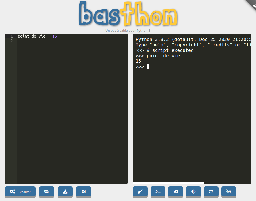 Tapez point_de_vie dans la partie console de Basthon et appuyez sur "Entrée"