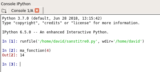 Après avoir exécuté le programme ci-dessus, tapez dans la console ma_fonction(4). Vous devriez obtenir ceci :