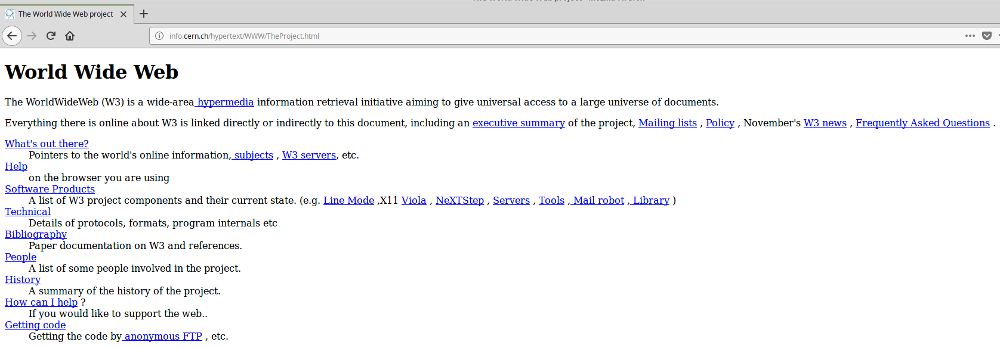 Cette première page web est toujours consultable à l'adresse suivante : http://info.cern.ch/hypertext/WWW/TheProject.html