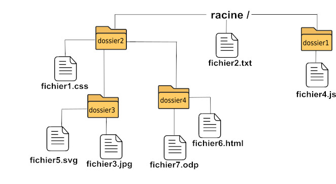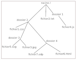 Comme vous pouvez le constater, la base de l'arbre s'appelle la racine de l'arborescence et se représente par un /