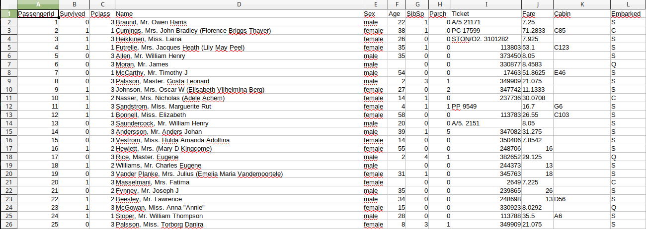 Ouvrez le fichier "titanic.csv" à l'aide d'un tableur.