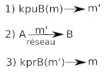 Si A désire envoyer un message m à B, il va utiliser la clé publique de B afin de réaliser le chiffrement (m est chiffré en m'). Le message chiffré (m') va ensuite pouvoir transiter entre A et B. Une fois le message m' en sa possession, B va utiliser sa clé privée afin de pouvoir déchiffrer le message m' et ainsi obtenir le message m. Le processus peut être résumé par le schéma suivant :