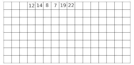 Soit une file F composée des éléments suivants : 12, 14, 8, 7, 19 et 22 (le premier élément rentré dans la file est 22 ; le dernier élément rentré dans la file est 12). Pour chaque exemple ci-dessous on repart de la file d'origine :
