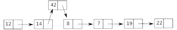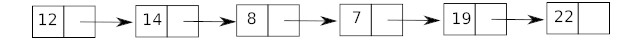 Dans une liste chaînée, à chaque élément de la liste on associe 2 cases mémoire : la première case contient l'élément et la deuxième contient l'adresse mémoire de l'élément suivant.