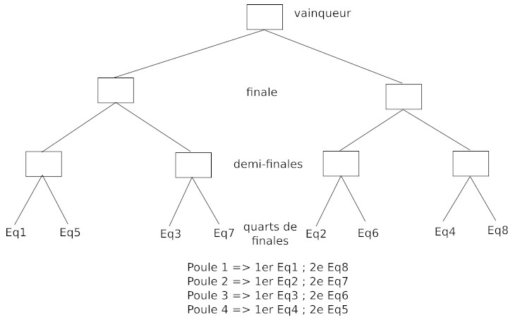 - Poule 1 => 1er Eq1 ; 2e Eq8