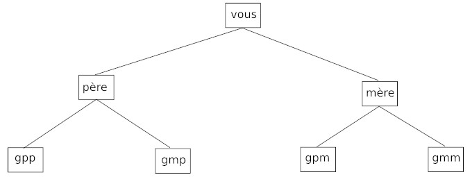 Nous avons ci-dessous ce que l'on appelle une structure en arbre. On peut aussi retrouver cette même structure dans un arbre "père/mère" :