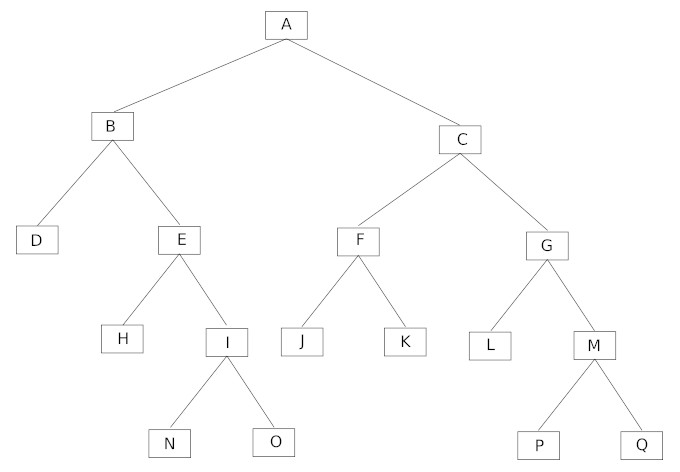 - Un noeud n'ayant aucun fils est appelé feuille (exemples : D, H, N, O, J, K, L, P et Q sont des feuilles)