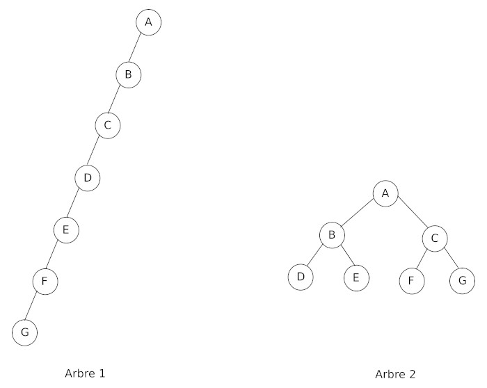 Il est possible d'avoir des arbres binaires de même taille, mais de "forme" très différente :