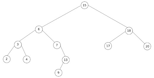 Appliquez l'algorithme de recherche d'une clé dans un arbre binaire de recherche sur l'arbre ci-dessous. On prendra k = 13. Quel résultat obtenez-vous ?