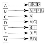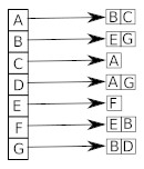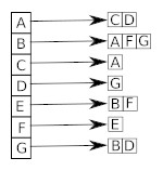 l = {'A':('B','C','D'), 'B':('A', 'E', 'F', 'G'), 'C':('A'), 'D':('A', 'G'), 'E':('B', 'F'), 'F':('B', 'E'), 'G':('B', 'D')}